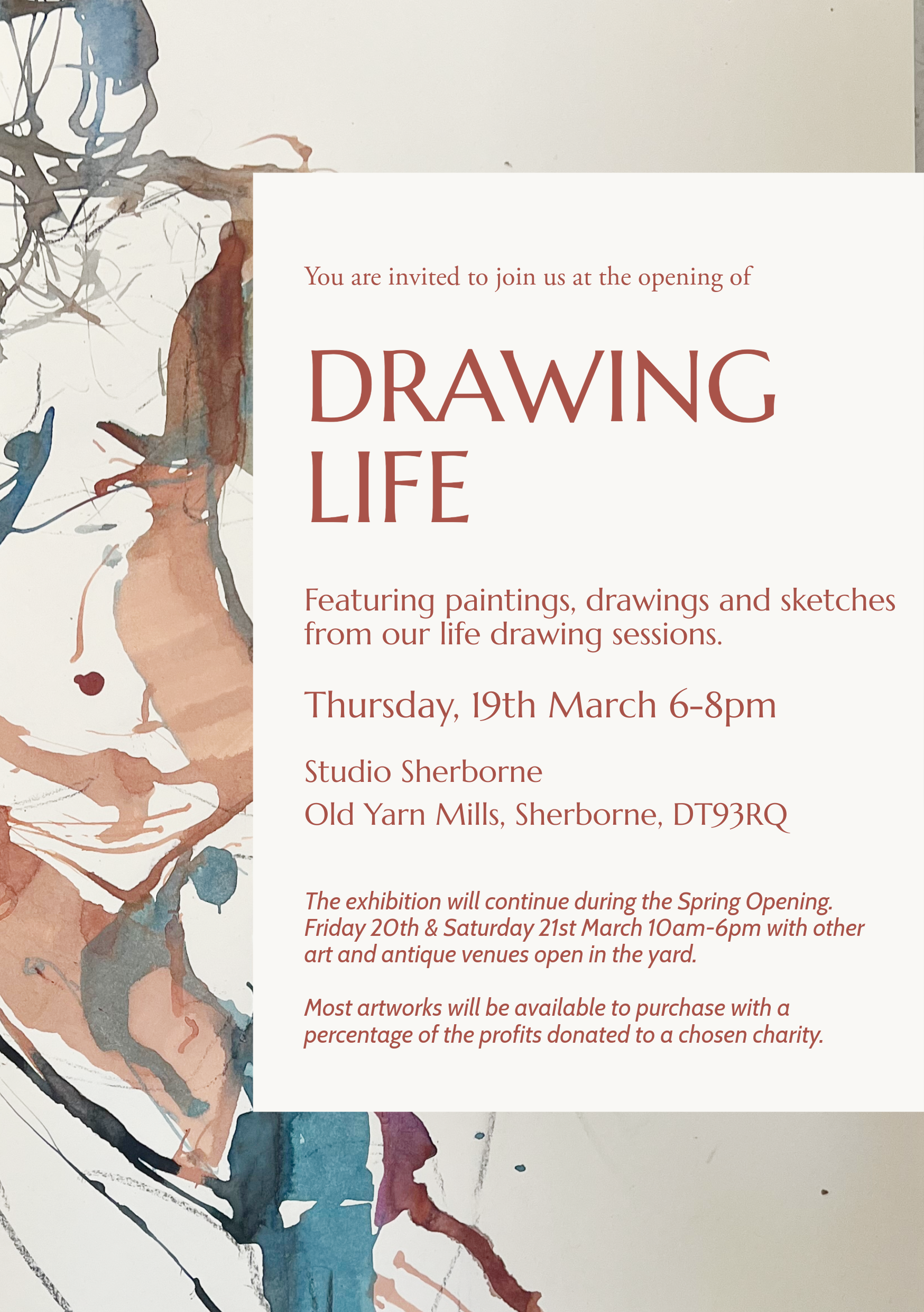 An exhibition of artworks created by attendants of our life drawing sessions. Works will be for sale and a share of the profits will go to charity. More information to come soon!